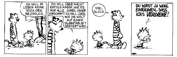 ![]() Warum ist das Leben, wie das Leben ist? Calvin und Hobbes haben die richtige Antwort auf alle Fragen. Bill Wattersons Weltenentdecker. Die beiden helfen in jeder Lebenslage. Ausprobieren! Ich mag sie ziemlich gern. |